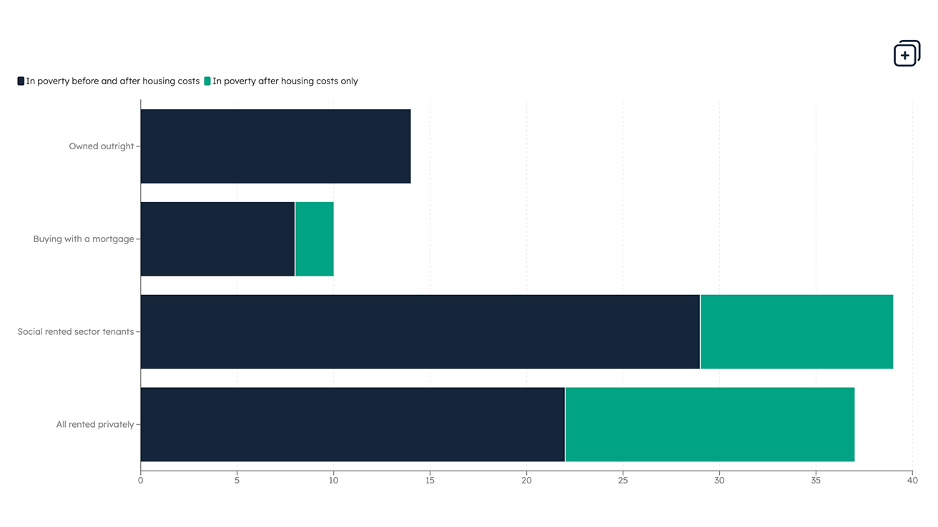Data Housing Our latest data charts show poverty rates are highest among renters, with high housing costs pulling many private renters into poverty and low incomes driving poverty among social renters.