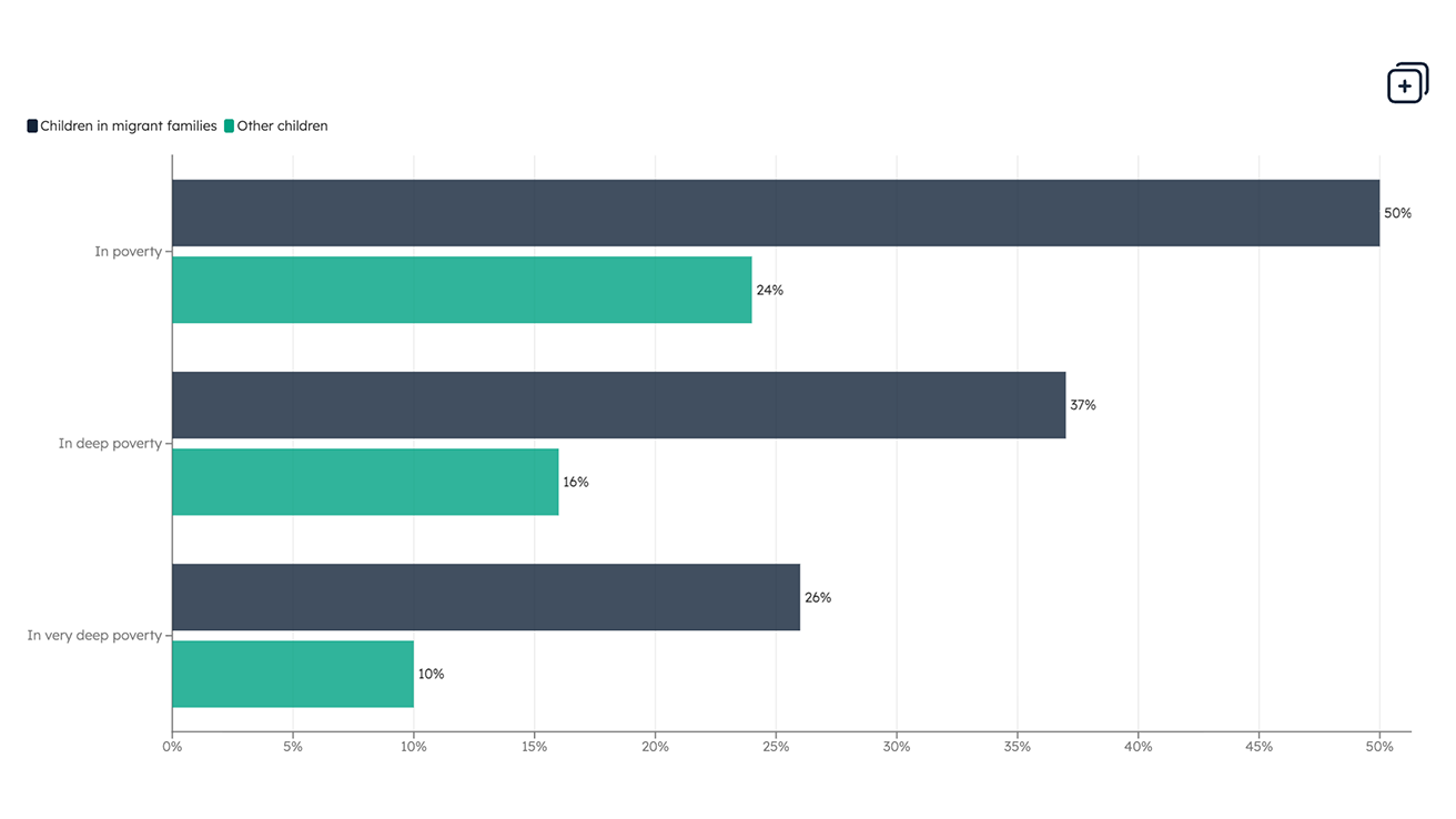 Data Migrant families Our latest data charts show children in migrant families face much higher poverty rates than other children, even when their parents are in work.