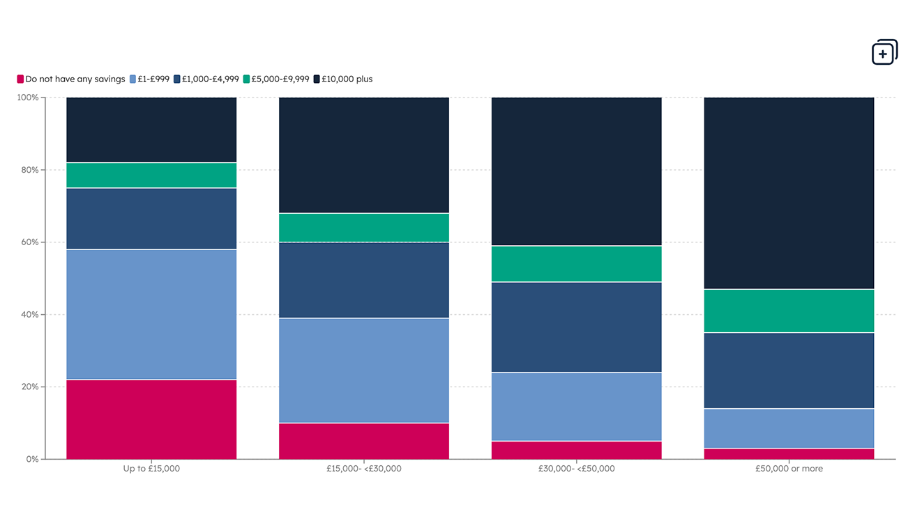 Data Savings and debt Our latest charts show low-income households are far more likely to hold little or no savings and face heavy debt burdens, increasing financial insecurity and hardship.